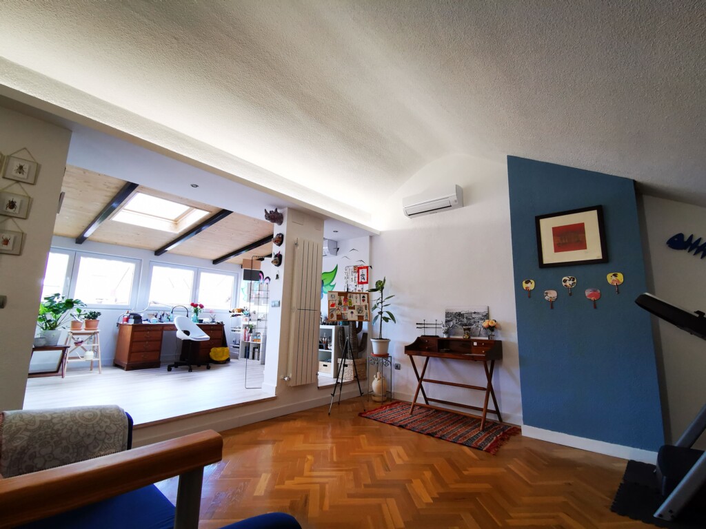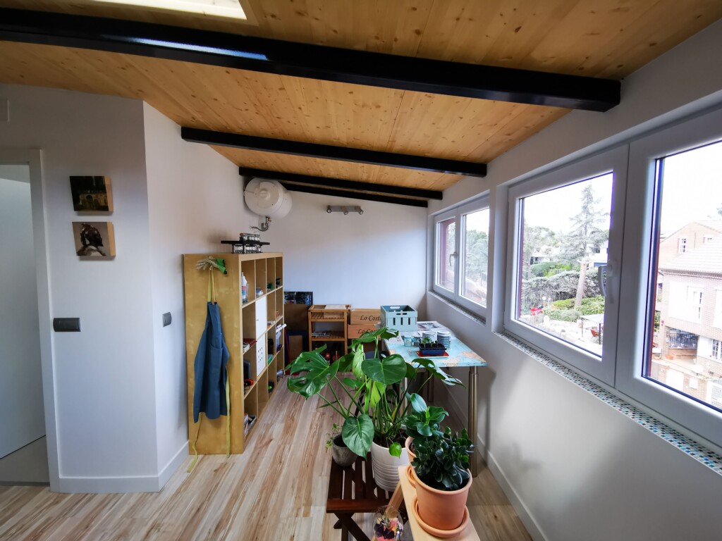 En la planta principal se renovaron los ambientes comunes, integrando salón, comedor y cocina en un entorno funcional y acogedor. La buhardilla se reformó para convertirla en una zona íntima y tranquila, perfecta como dormitorio o espacio de lectura, mientras que la terraza se acondicionó para disfrutar del exterior durante todo el año.
